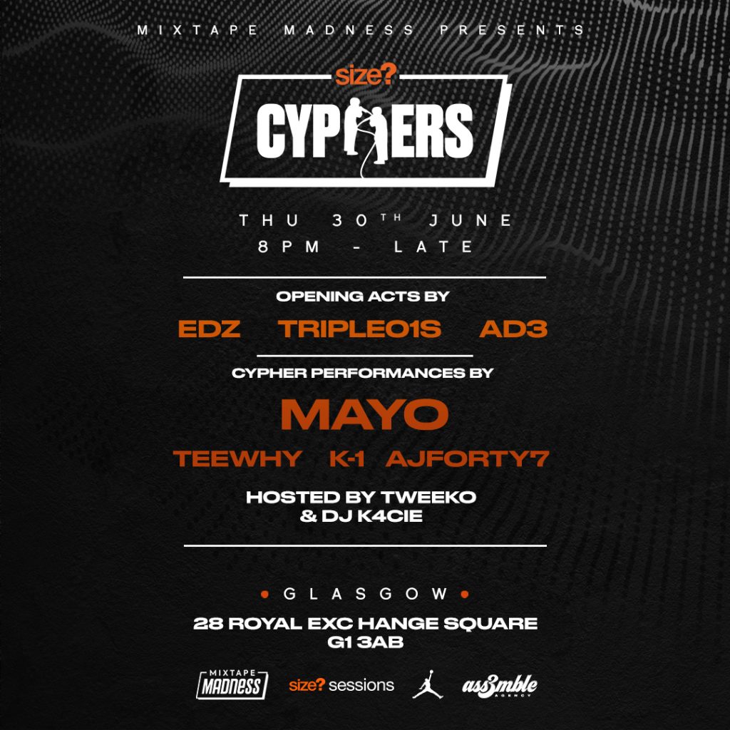 Size? And Mixtape Madness Announce Second Cypher Session In Glasgow With Acts Mayo, Teewhy, Ajforty7 And More